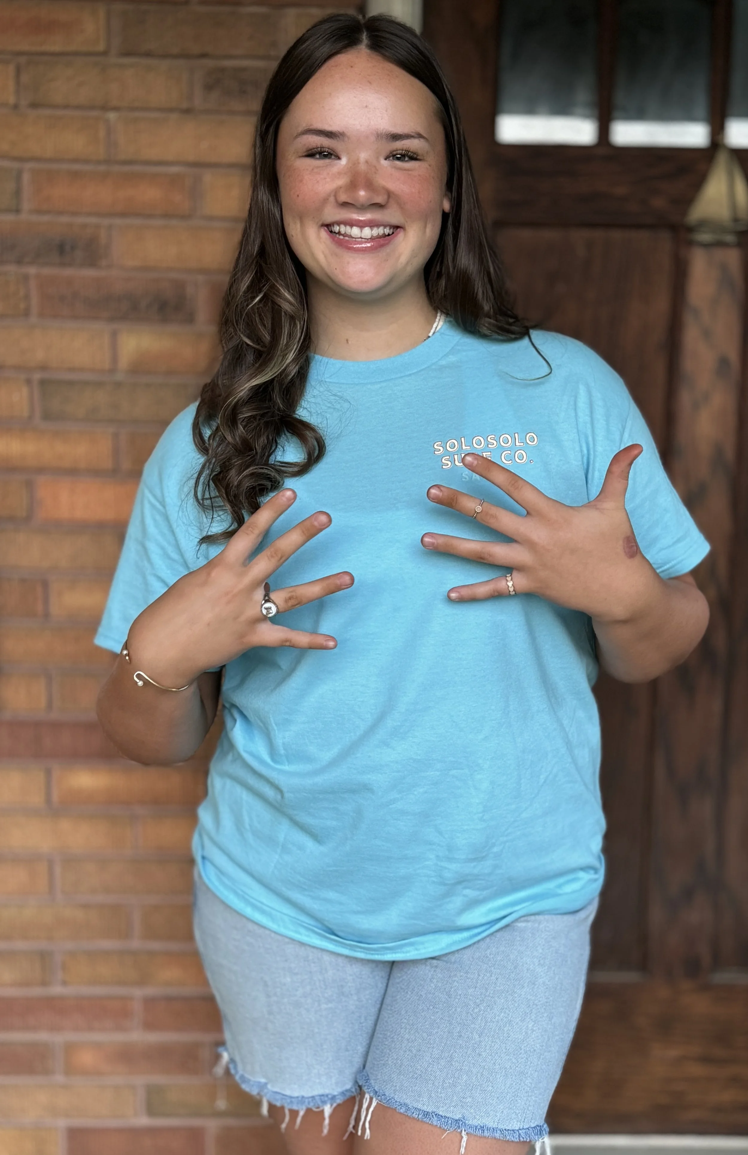 I just started 9th grade (this pic was my first day of school, holding up 9 fingers for 9th grade and repping my Solosolo brand). I am the starting setter on the Freshman volleyball team. It was a long road to get here. At the end of my 7th grade club season, in the last tournament of the year, I ruptured my ACL and slightly tore my meniscus while running after a ball for game point. I had to have surgery to clean up the meniscus tear and to graft part of my quad tendon to be used as my new ACL. I have a large scar above my left knee that represents this long road of recovery. It took a full year of physical therapy to be cleared to play volleyball again. I used to be an outside hitter, but while I couldn’t play, I could still sit and set. Practicing setting so much is what helped me become the starting setter on my freshman team. I am so excited that I am able to play volleyball again and I hope to one day receive a scholarship to play in college.